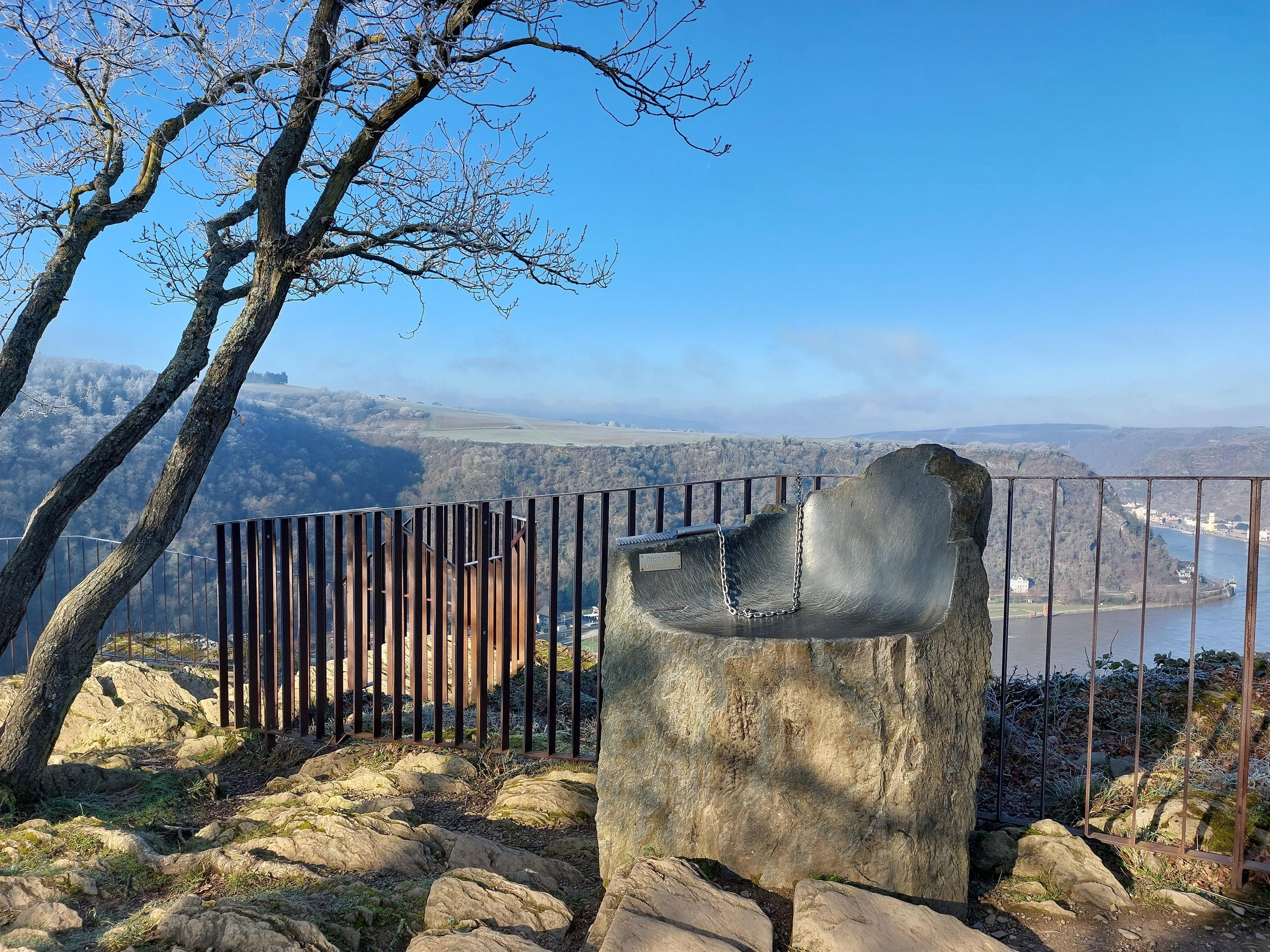 Der Loreley-Thron ist ein Fotopoint mit tollen Ausblick ins Rheintal. Man kann auf dem Thron Platz nehmen und sich mit dem Loreley Kamm die Haare kämmen.