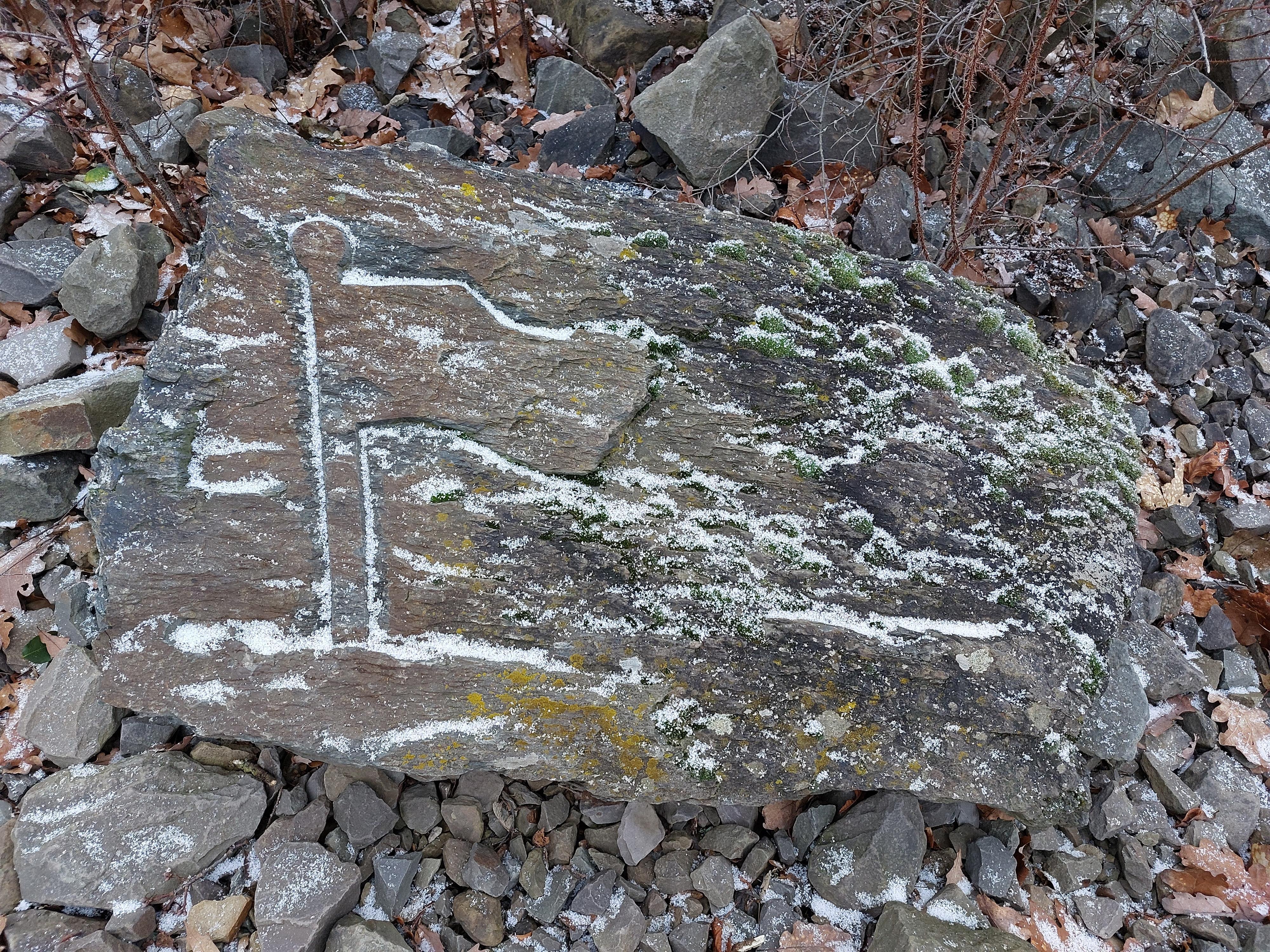 In Stein gemeißelte Piktogramme.